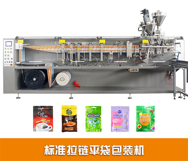 拉鏈平袋包裝機系列專為小袋、中袋包裝設計,擁有雙工位下料,可以定制掛孔、拉鏈等功能,大量適用于顆粒、粉末等物料罐裝包裝類型。