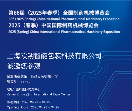 2025年4月23日—25日,第66屆春季藥機博覽會于重慶國際博覽中心盛大啟幕。作為制藥裝備領域的年度盛會,本次展會吸引了來自全球24個國家和地區(qū)的1600余家企業(yè)參展,近百場專業(yè)會議集中展示前沿技術成果與創(chuàng)新應用場景。在這場行業(yè)盛宴中,上海歐朔智能包裝科技有限公司(展位號:S2-25)攜旗下明星產品——異形袋包裝機與多列化包裝機驚艷亮相,成為展會現場備受矚目的焦點。